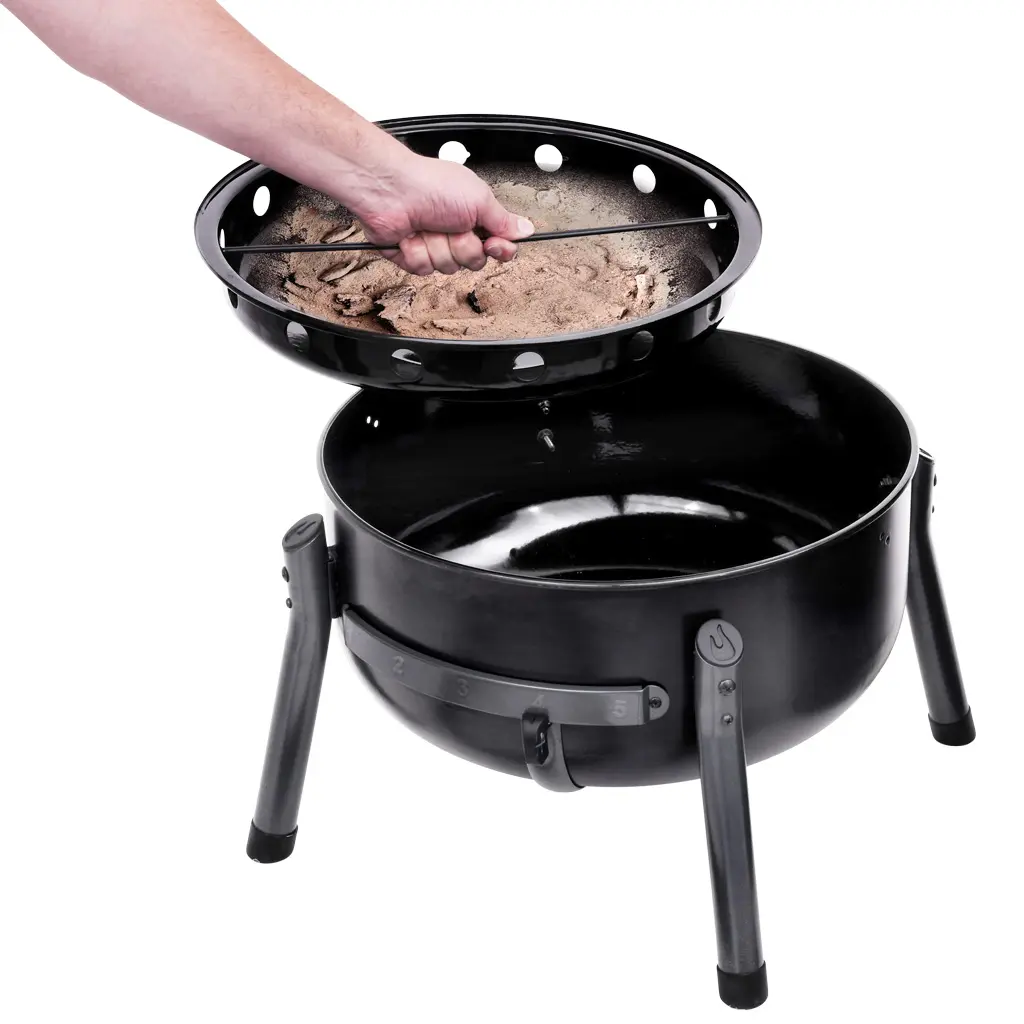 - Porcelain-coated steel lid, body and fire bowl