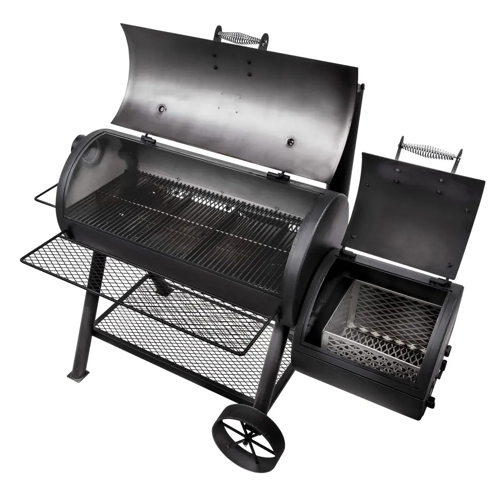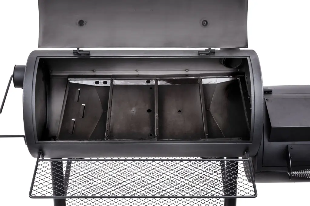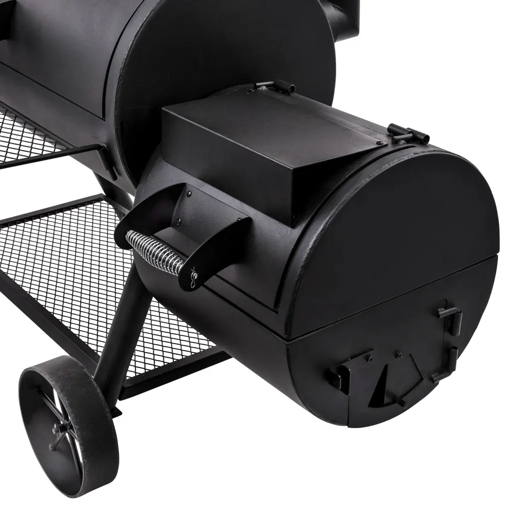 Optional smokestack locations let you choose between reverse flow smoking and traditional offset smoking