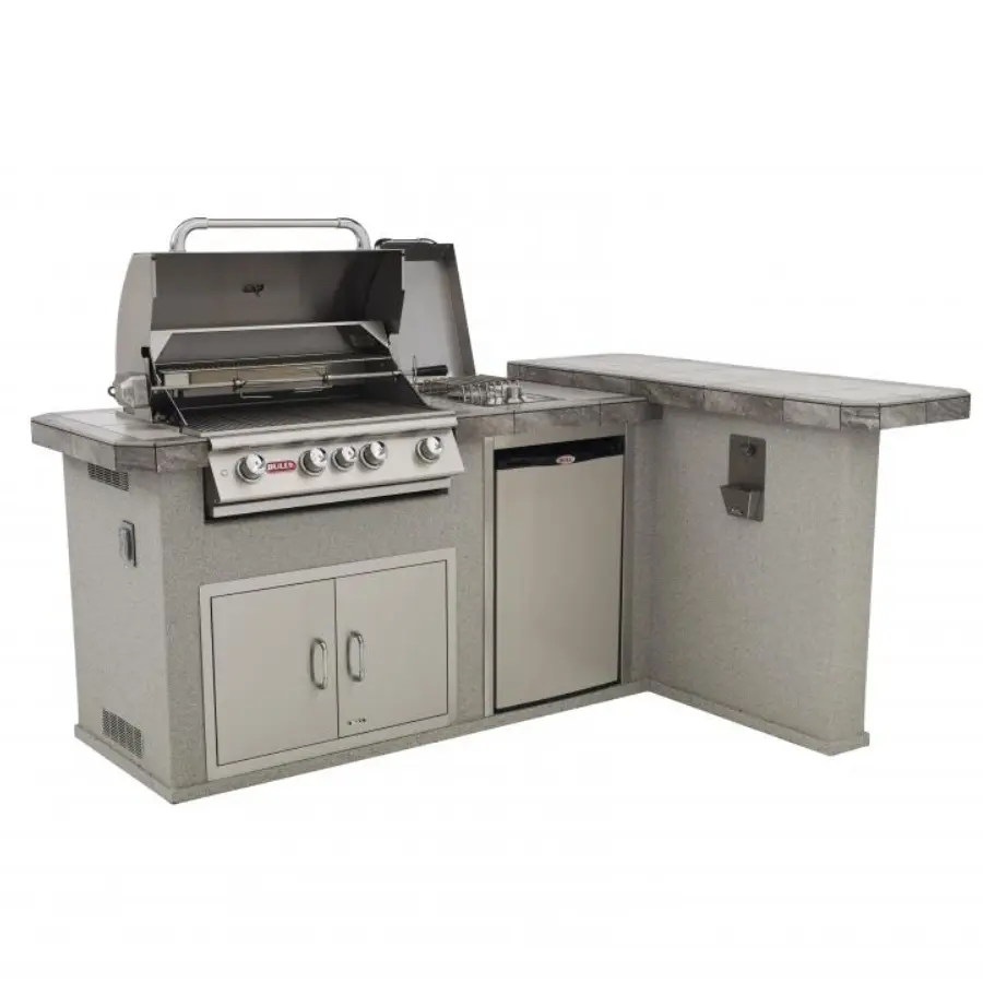 Tập hợp xung quanh hòn đảo BBQ nhỏ gọn này và nấu các công thức nướng tốt nhất của bạn trên lò nướng bằng thép không gỉ BULL với tủ lạnh bằng thép không gỉ.