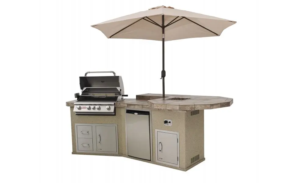 The Western Q Outdoor Island Kitchen features an intimate countertop and bar for guest seating, unmatched grilling and entertaining experience.