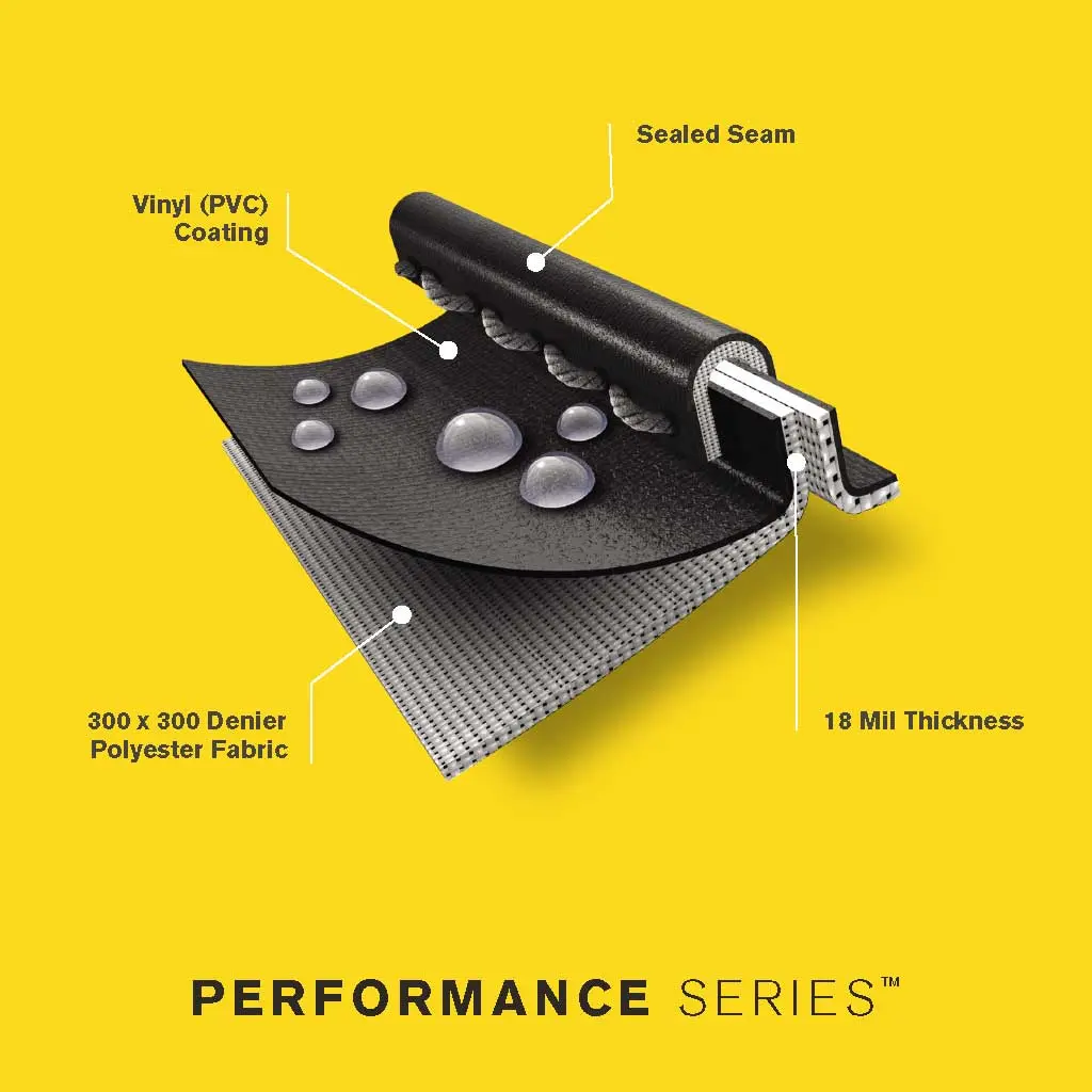 18 Mil thickness polyester fabric with Sun Fade Protective Liner.