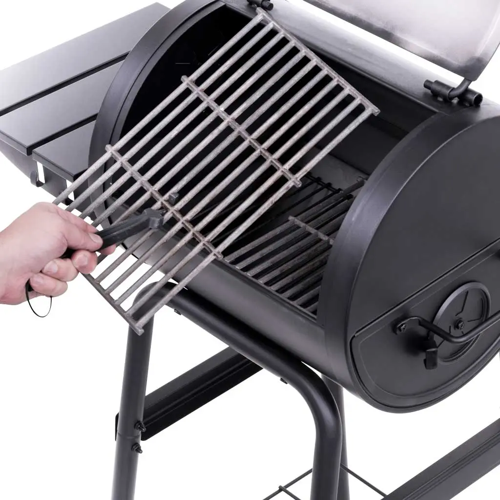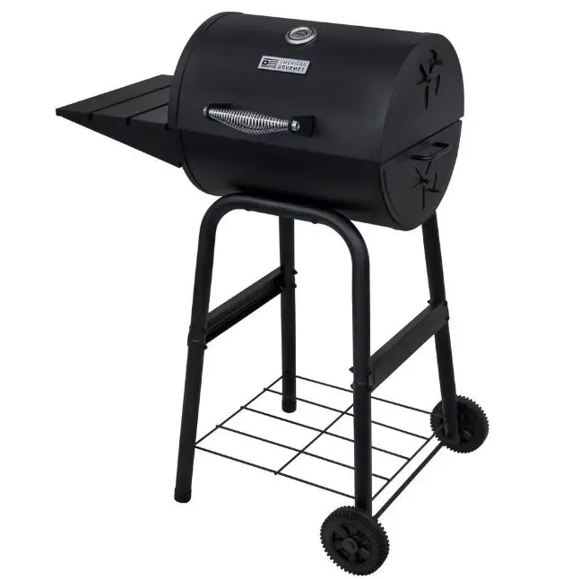 The American Gourmet 18” Charcoal Grill gives you everything you need for a traditional charcoal grilling experience. This charcoal grill has 225 square inches of total cooking space on heavy-duty cast iron grates to give you plenty of room to meet your cooking needs. With features including a side shelf that provides plenty of space for prep work and a slide out charcoal drawer that allows for easy fuel access and clean-up, the quality materials and sturdy construction of the American Gourmet ensures that your grill is made to last.