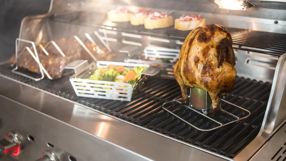 Our Beer Can Chicken Rack keeps your chicken moist and tender while on the grill and folds for easy storage when not in use.