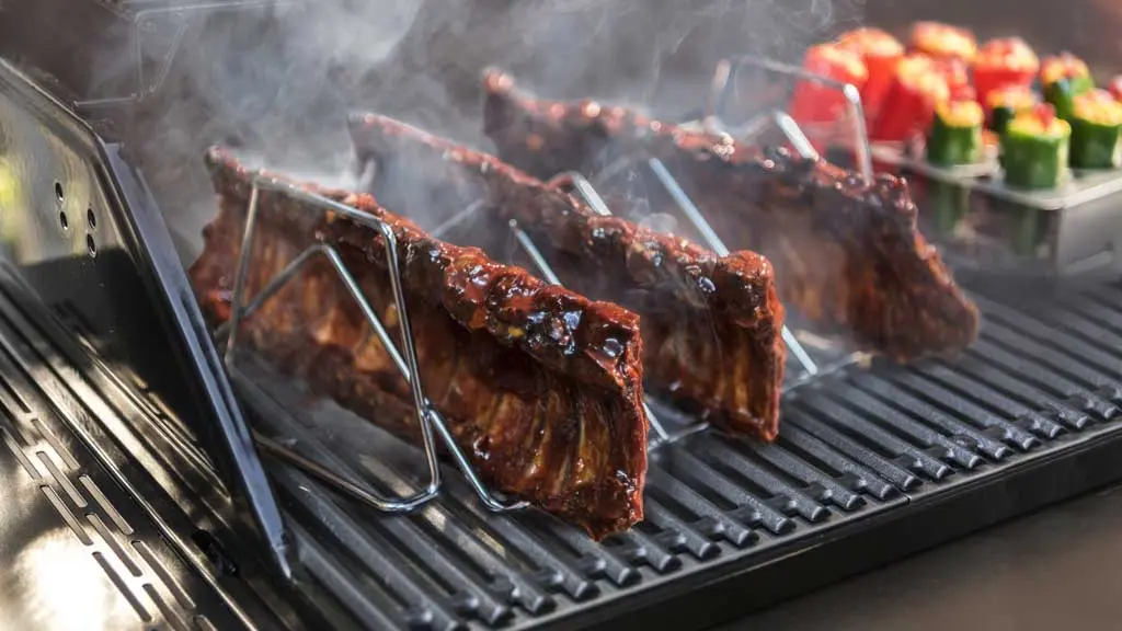 One side can hold up to 6 rib racks, while the other side can hold poultry or large cuts for roasting.