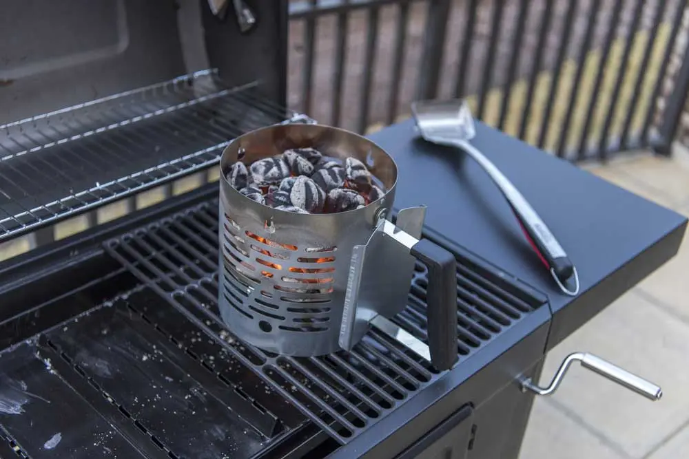 Charcoal is ready for the grill in half the time compared to the standard Char-Broil chimney starter