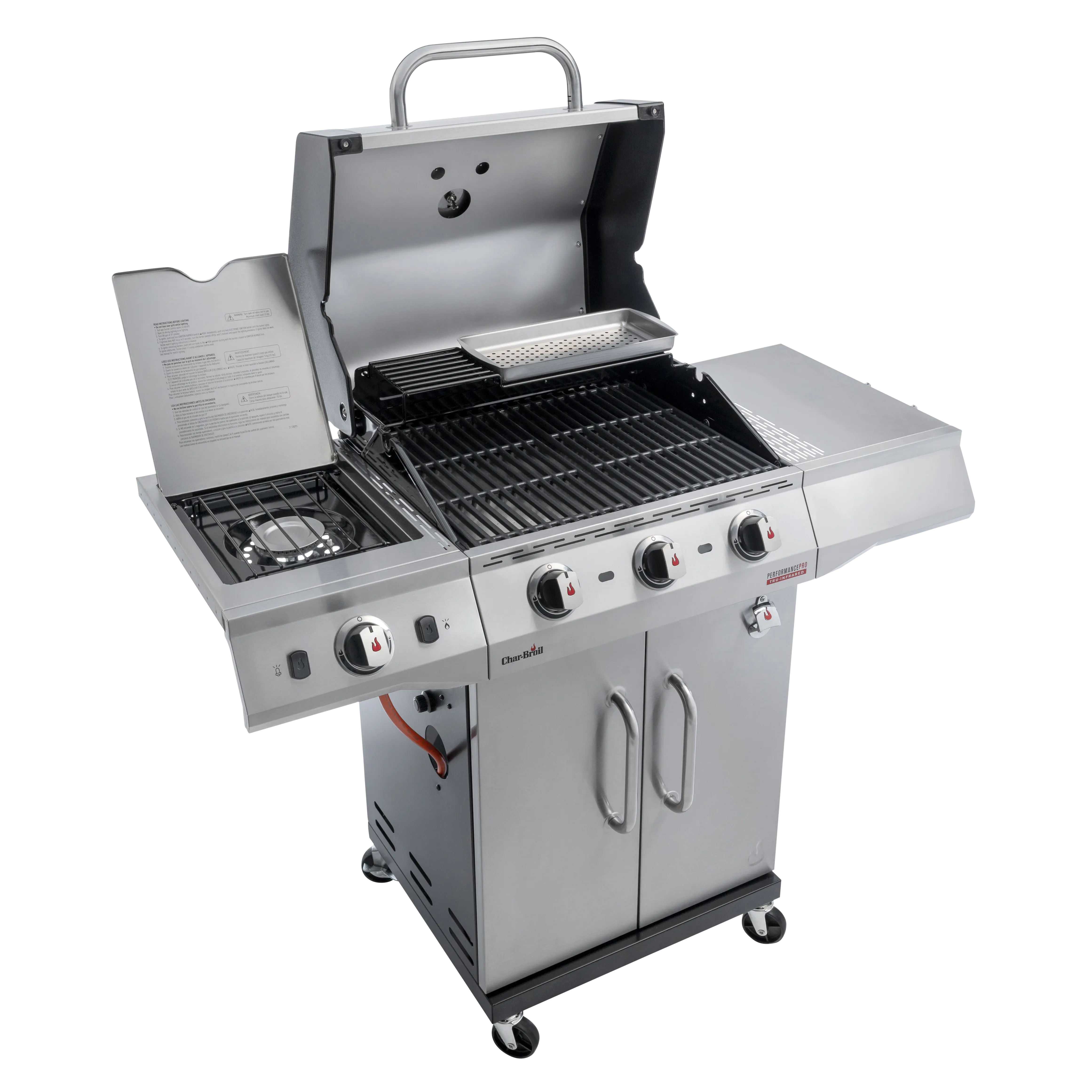 The Performance PRO S 3 gas grill is equipped with advanced TRU-Infrared™ technology, keeping your food juicy and flavorful. It features a SureFire® electronic ignition system for easy startup and a side burner for preparing sauces. Built with premium stainless steel, the grill is durable, expandable, and eco-friendly.