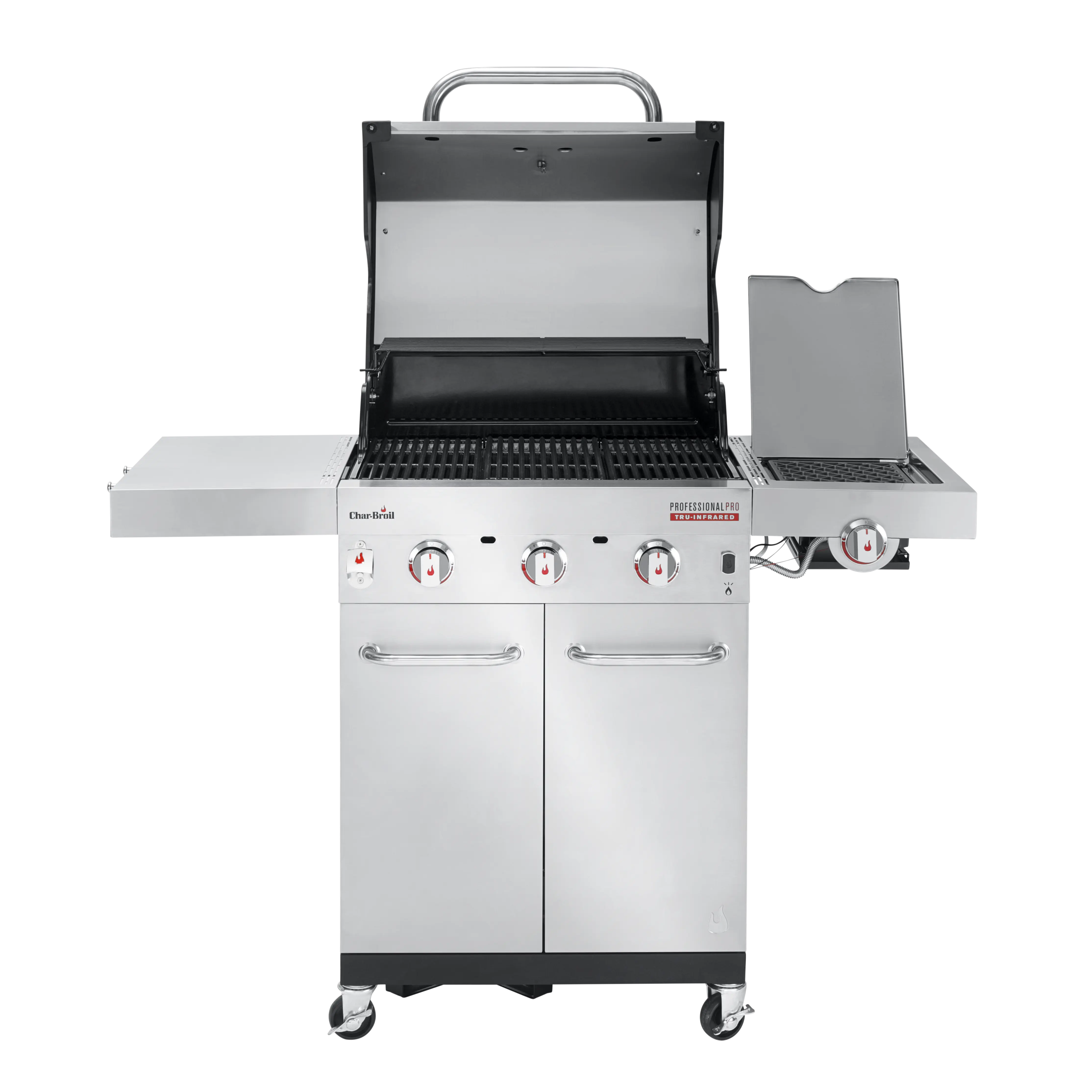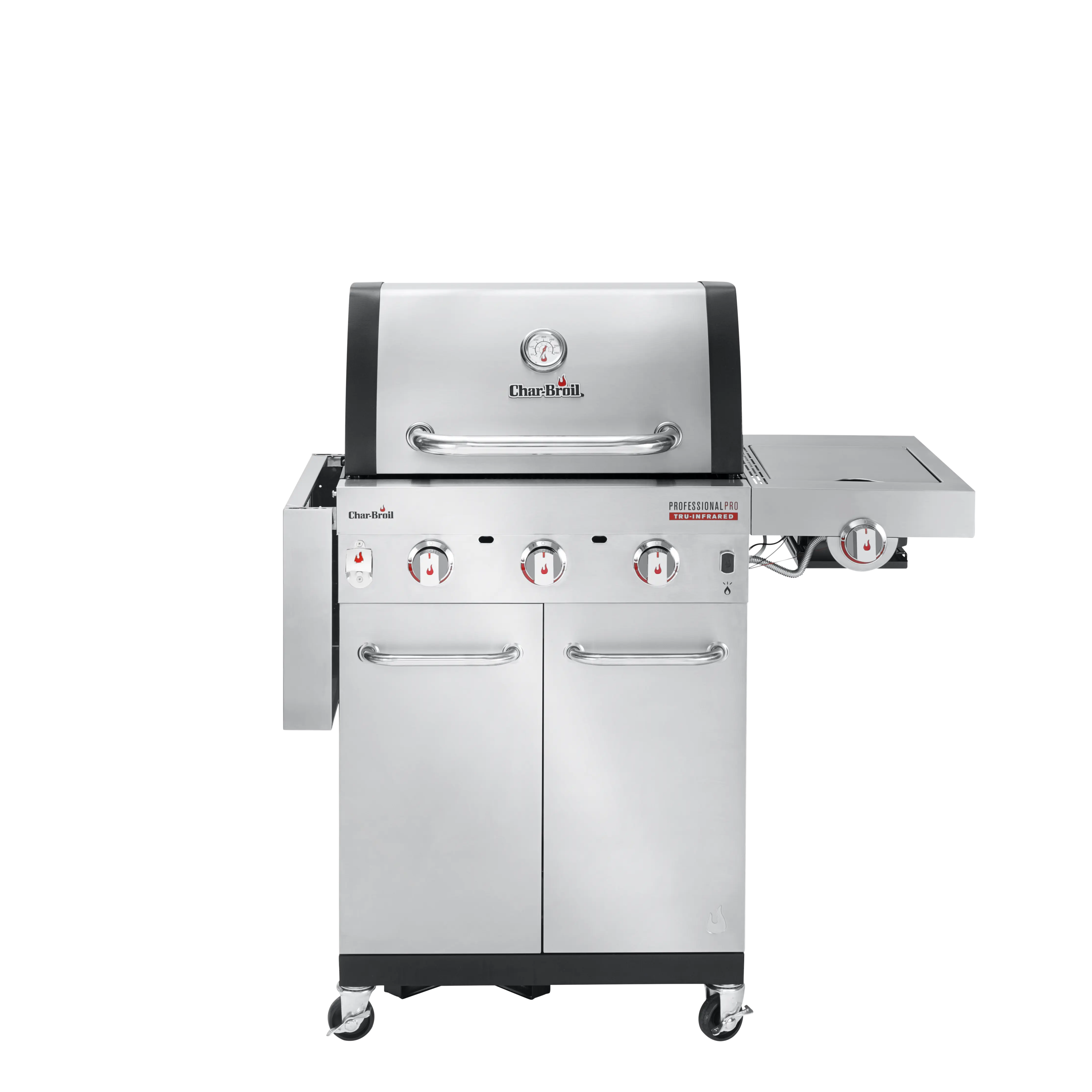 The Char-Broil Professional PRO S 3 combines high-performance TRU-Infrared™ technology to ensure your food remains juicy, tender, and delicious, with a sear burner that creates a crispy crust. It features easy electronic ignition, durable stainless steel construction, gas efficiency, and smart features such as a gas level indicator and folding side shelves, making it the ideal companion for every barbecue party.