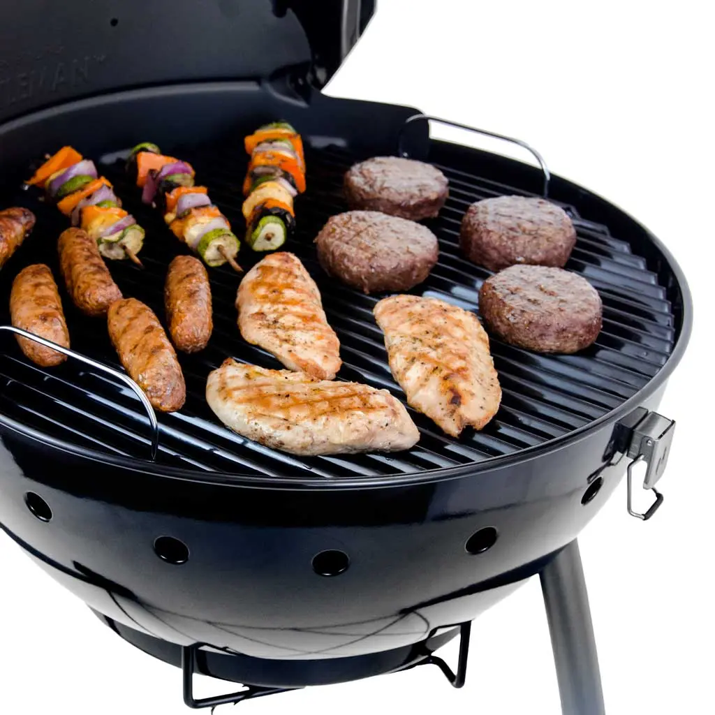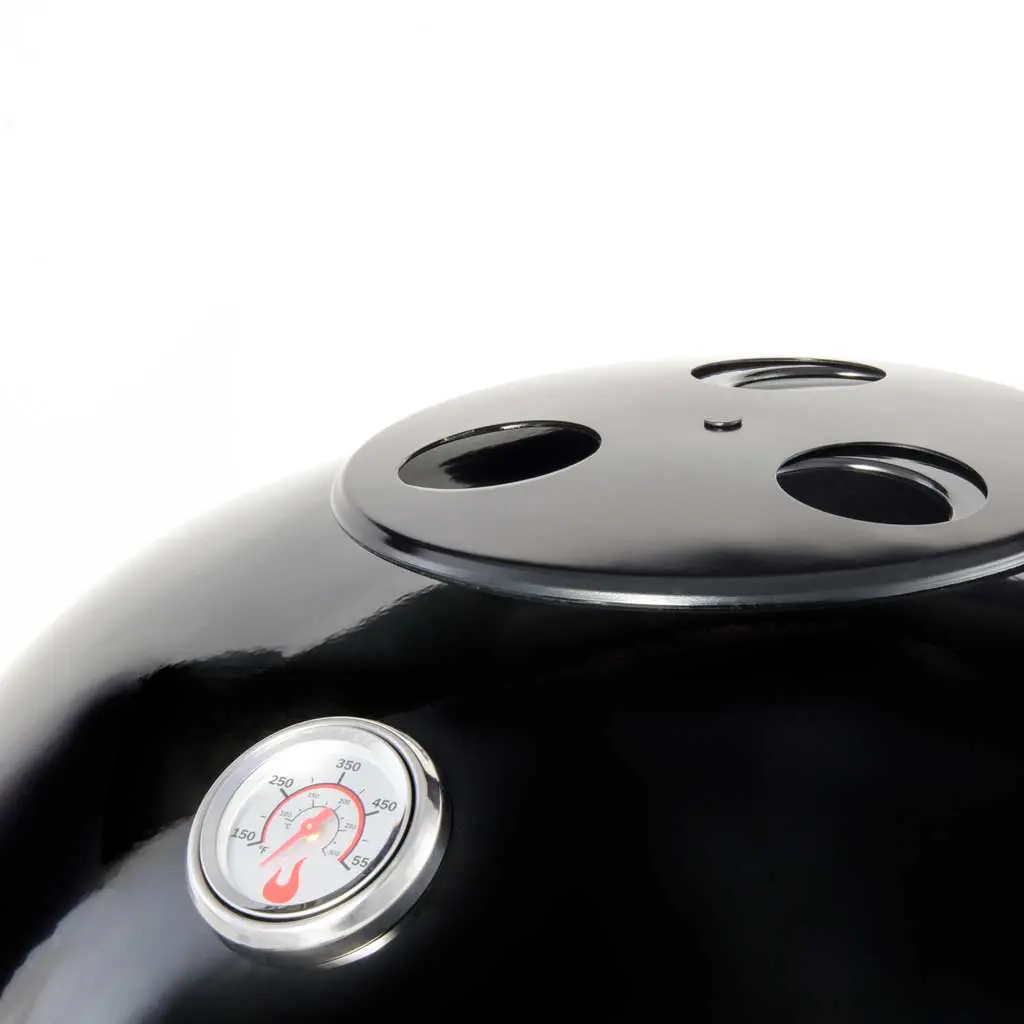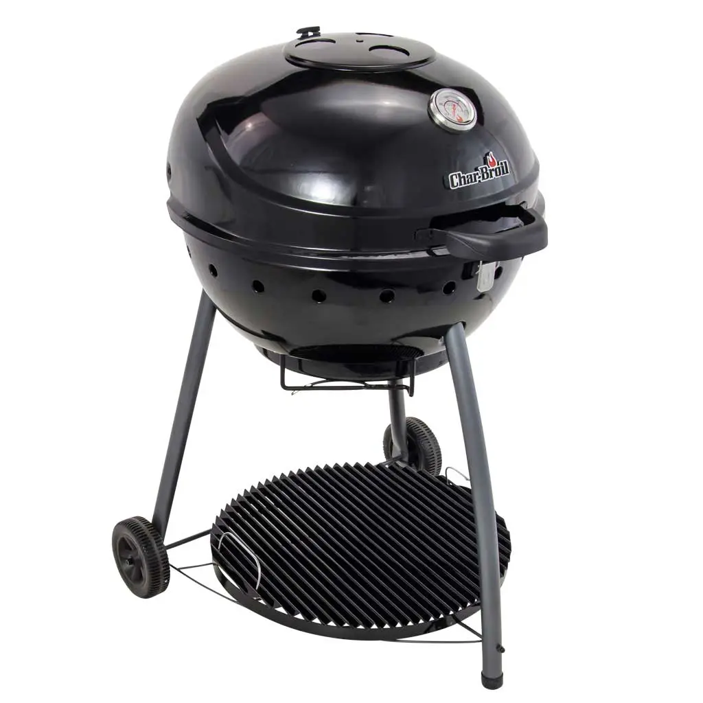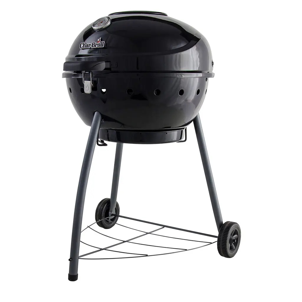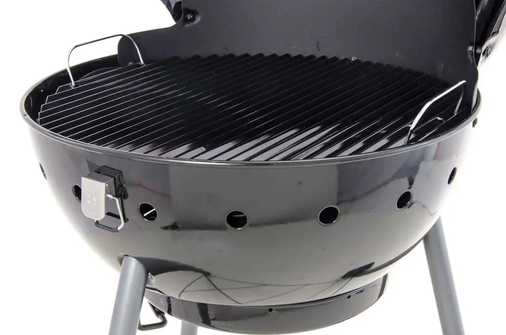 The Kettleman® TRU-Infrared™ Charcoal grill features an oversized damper to control cooking temperature. Keep flare-ups low with porcelain-coated cooking grates. And you can grill more with less charcoal. With the removable ash pan clean up is easy and the hinged lid keeps the lid in place while you cook.