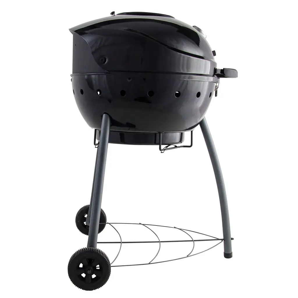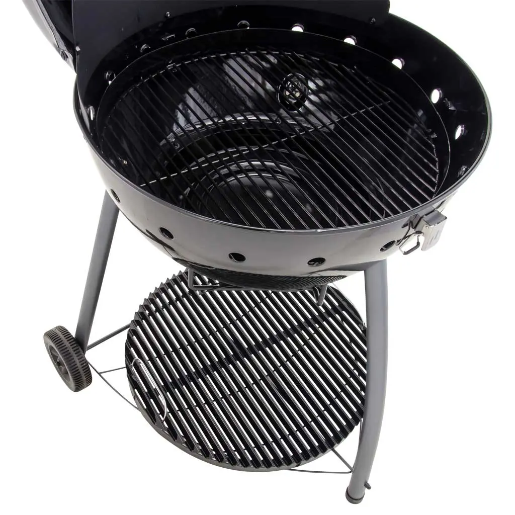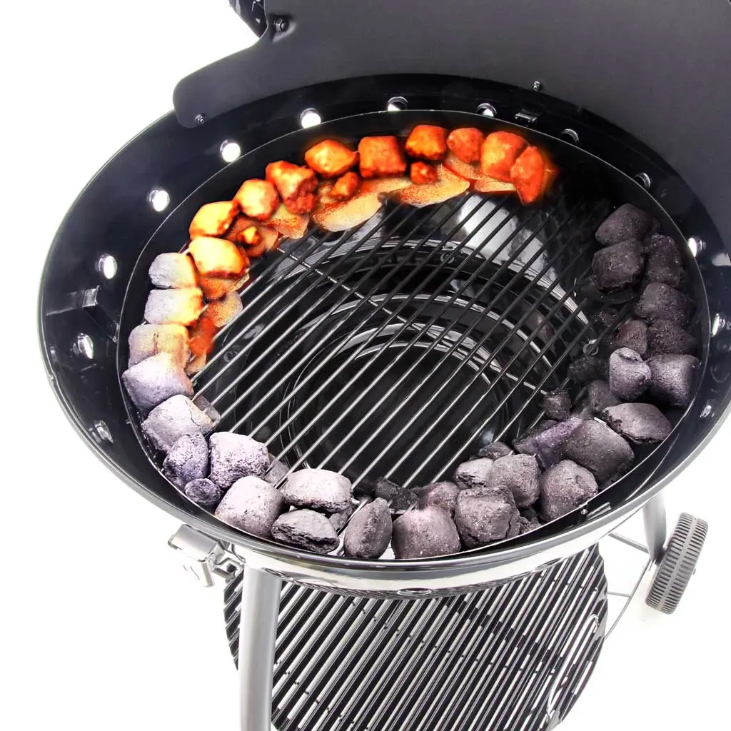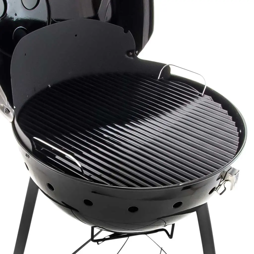 The Kettleman® TRU-Infrared™ Charcoal grill features an oversized damper to control cooking temperature. Keep flare-ups low with porcelain-coated cooking grates. And you can grill more with less charcoal. With the removable ash pan clean up is easy and the hinged lid keeps the lid in place while you cook.