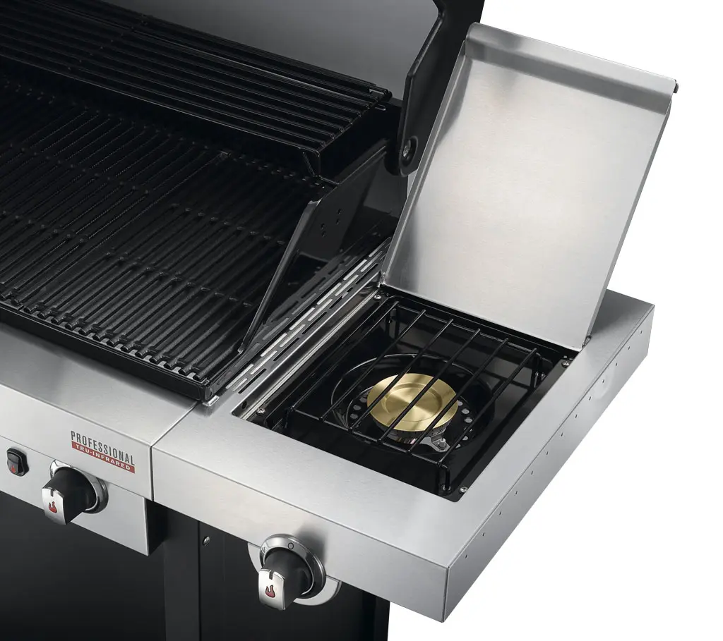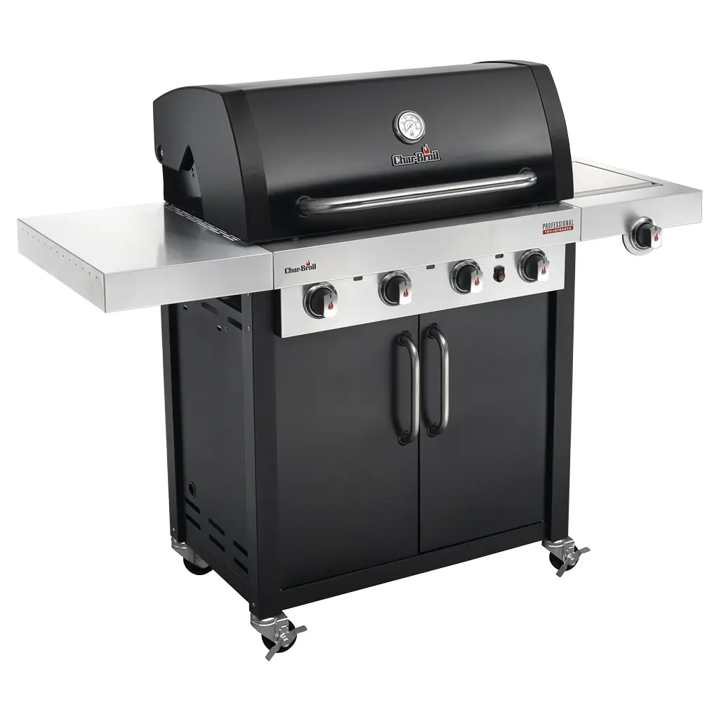 The Professional Series™ 4-burner grill features a sleek black design and the TRU-Infrared system for no flare ups and even heat.
