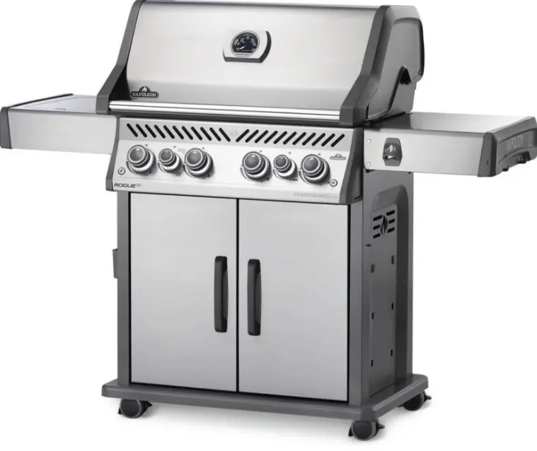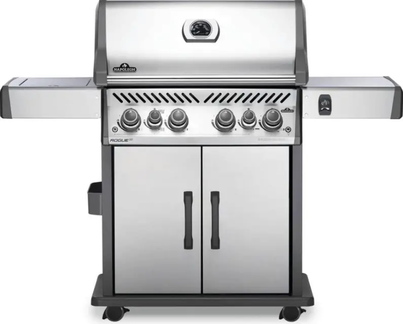 The Napoleon Rogue® 525 Propane Gas Grill with Infrared Side Burner in Stainless Steel is a large and durable, easy to maintain gas grill.