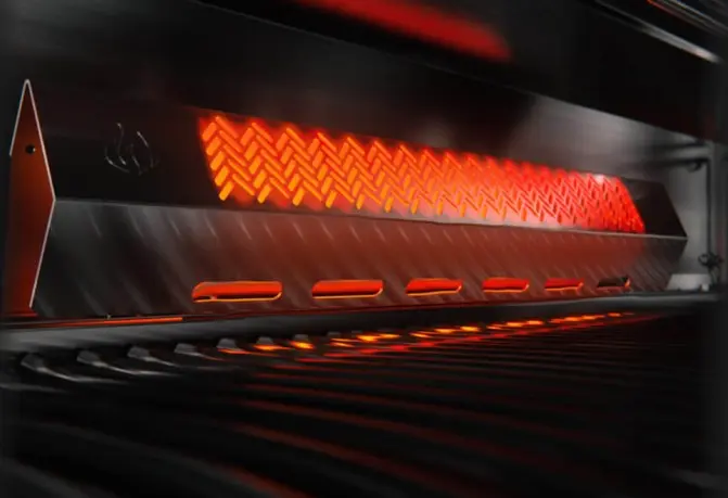 Sear restaurant-style steaks on the integrated sizzle zone side burner while generous side shelves provide plenty of prep space.
