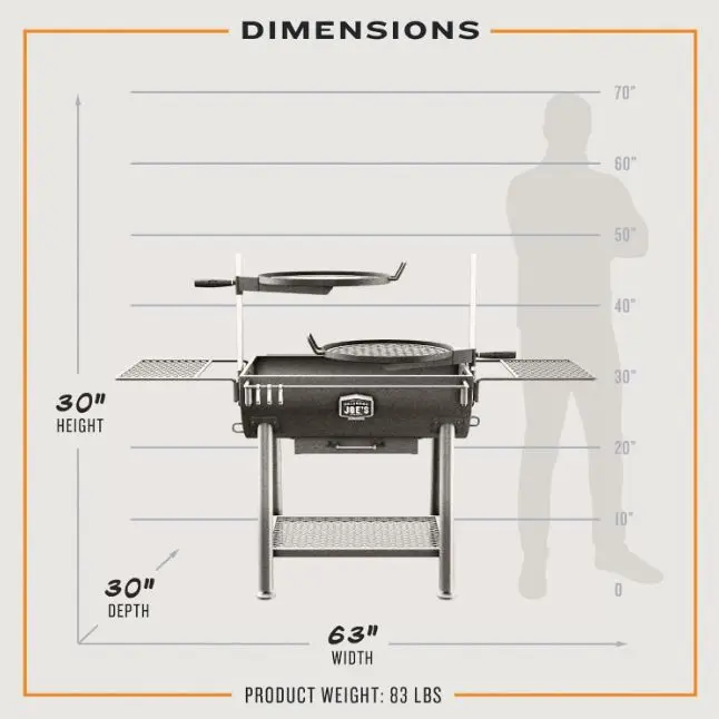 FIREBOX: Open firebox design for 360° access to stoke the fire without disturbing your food