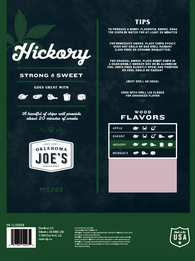 Use Oklahoma Joe’s® Hickory Wood Chips to infuse food with savory flavor.