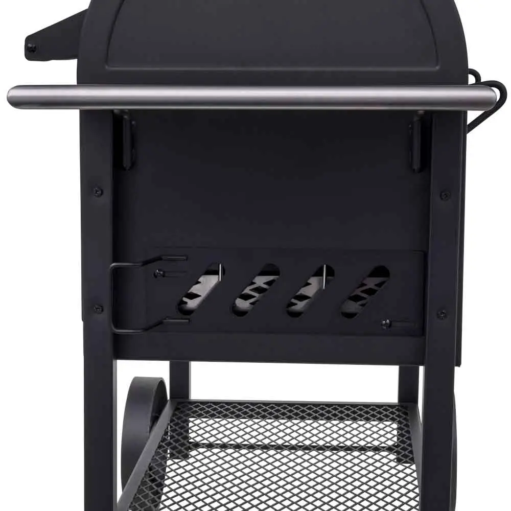 Height-adjustable charcoal tray lets you grill with high heat or cook low and slow