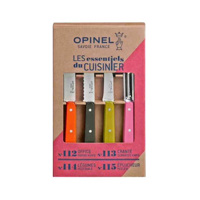 Opinel Les Essentiels Fifties kitchen knife set with beechwood handles.