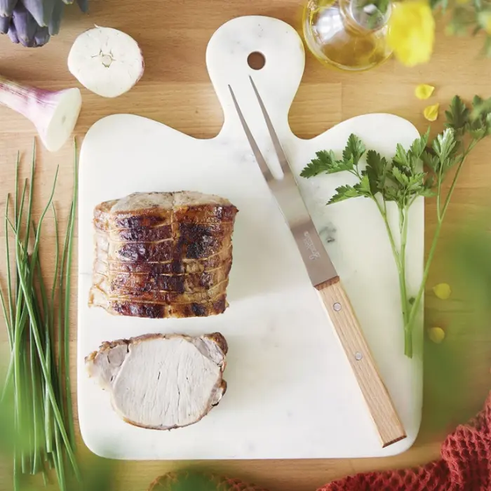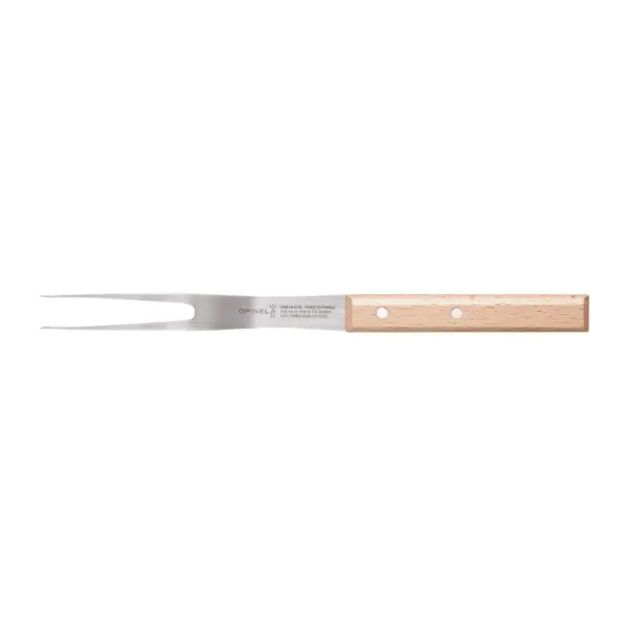Opinel Parallele N124 Fork is an excellent tool for slicing and cooking. With a simple yet sturdy design, this fork is crafted from beech wood with a varnished finish, offering natural beauty and durability. The Opinel Parallele N124 Fork not only facilitates precise handling and slicing of meats but also serves as a safe kitchen utensil, prioritizing functionality and aesthetics.