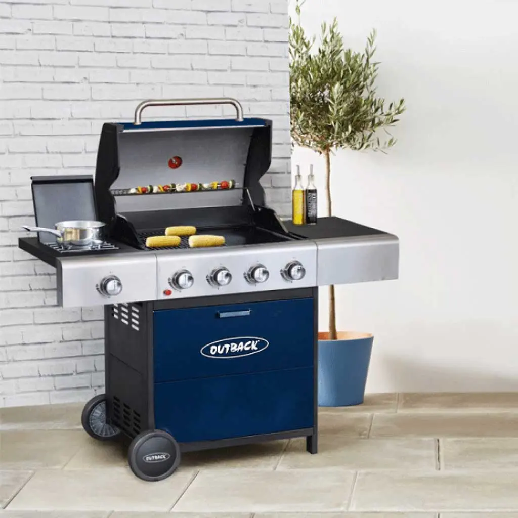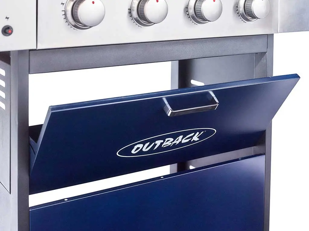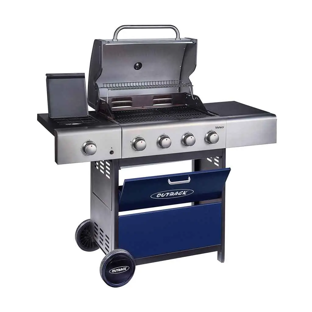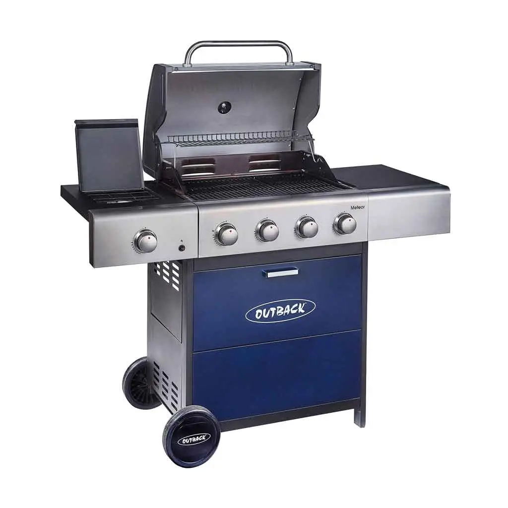 A regular top choice among al fresco enthusiasts, the Meteor 4 has had a major part in making Outback the UK gas barbecue market leader. The eye-catching Meteor comes with a side burner, porcelain enamelled roasting hood, 2x cast iron grills, drip tray and built-in storage tray.