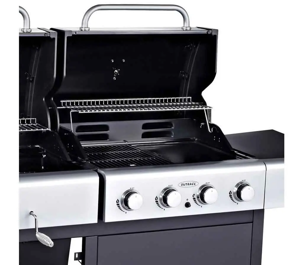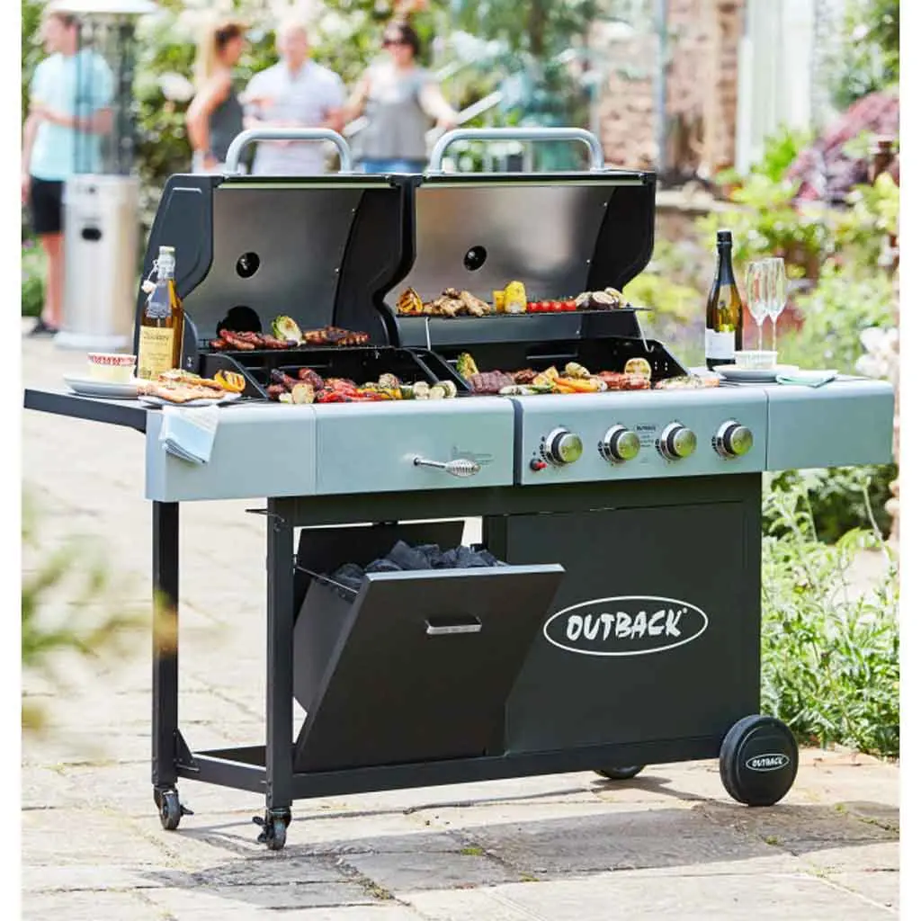 For the ultimate choice of outdoor entertaining, the Outback Duel Fuel 4 burner offers the chance to impress a sizeable party of guests with a traditional charcoal-cooked menu, or a gas-fired selection that’s sure to keep up with demand.