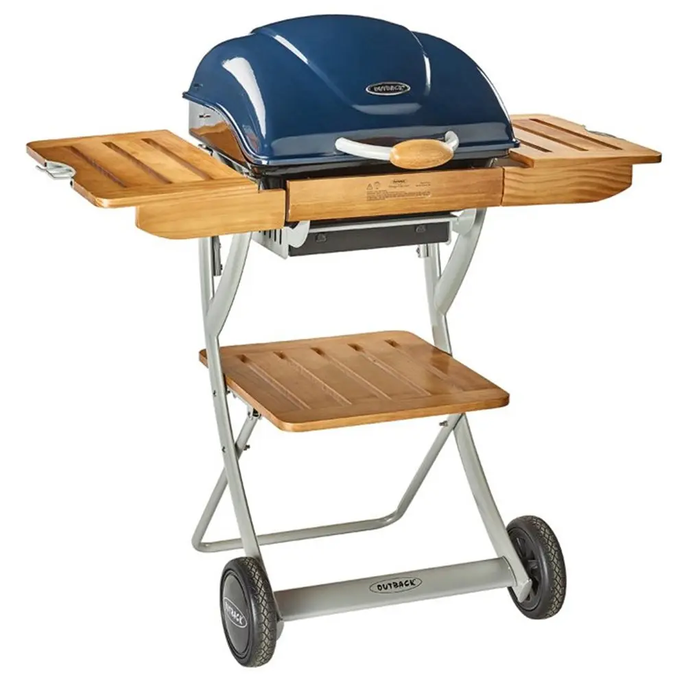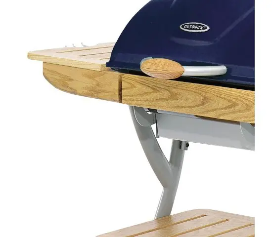 Outback Omega Charcoal 200 Red barbecue features two side tables that are fixed in place and one wooden table underneath for that valuable extra space, one of these side tables has useful hooks for hanging your Outback barbecue accessories available from the accessories section.