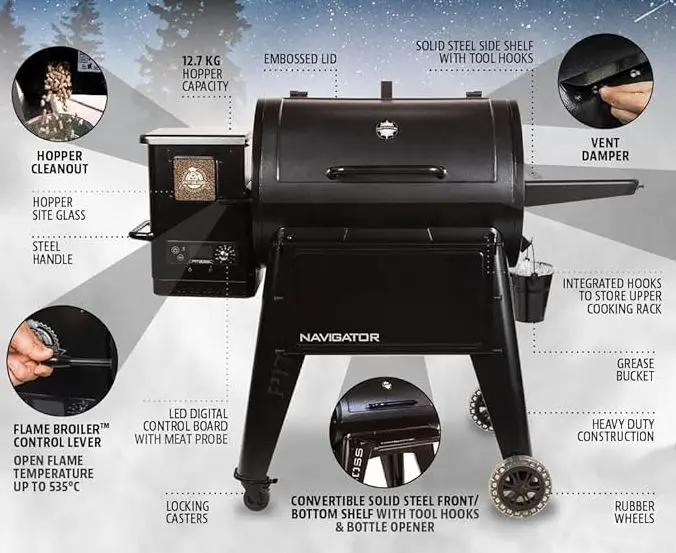 The Pit Boss® 850 Navigator Series is the ultimate grilling experience for the modern handyman, ergonomically designed to provide less strain and more usability.