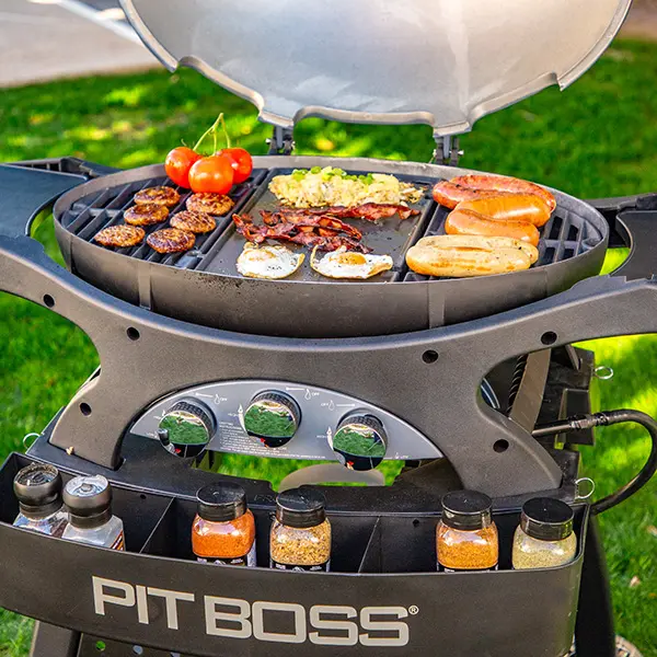 Turn your portable grill into a multi-function grill with the 2-sided grill accessory at the Pit Boss Sportsman 3 center. Quick and convenient for performing many different cooking methods.
