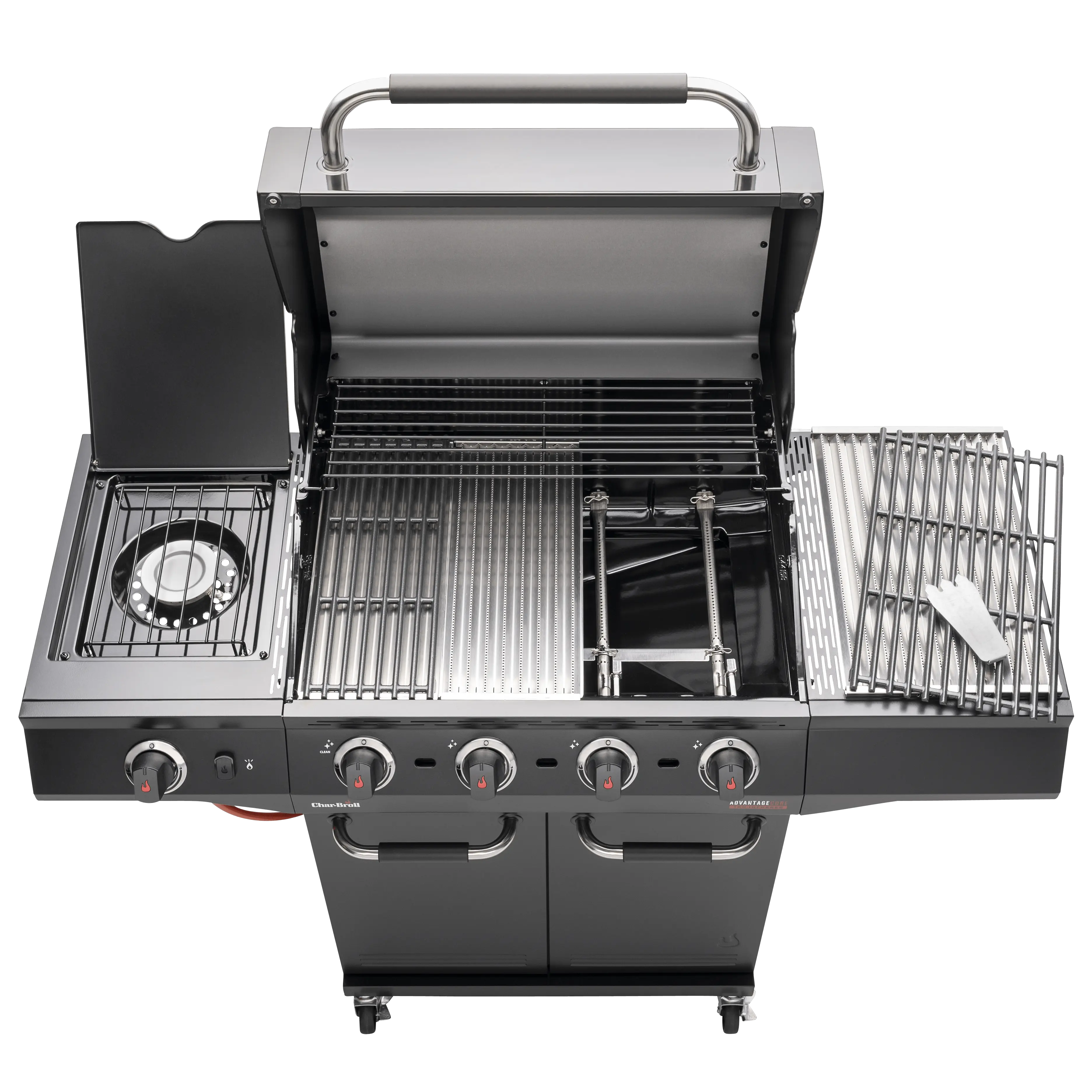 - Side-burner dễ dàng làm nóng nước sốt và các món ăn phụ kèm theo món nướng, hoặc gập nắp lại để sử dụng bề mặt như một không gian làm việc phụ trợ.