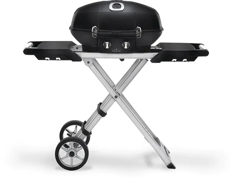 Napoleon’s TravelQ™ PRO285 Portable Propane Gas Grill with scissor cart can grill up to 20 hamburgers at once on the 285 square inches of cooking area.